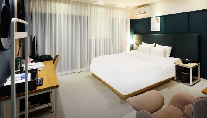 * 객실 사이즈가 전반적으로 넓어 일반 고객뿐만 아니라 장기 투숙 및 연박 고객의 만족도가 높은 것이 특징입니다. 특히 계룡시 특성상 군 관련 수요와 산업·근로자 숙박 수요가 꾸준히 발생하는 지역으로, 공실 리스크가 낮고 안정적인 운영이 가능합니다.